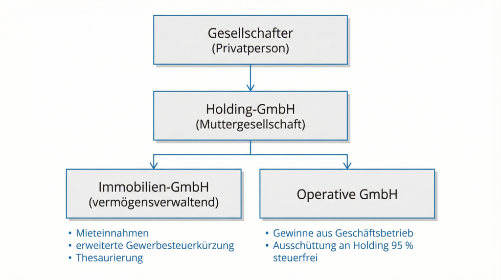 Für Investoren mit größerem Immobilienportfolio oder operativen Geschäftsbetrieben bietet die Holdingstruktur zusätzliche Optimierungsmöglichkeiten.